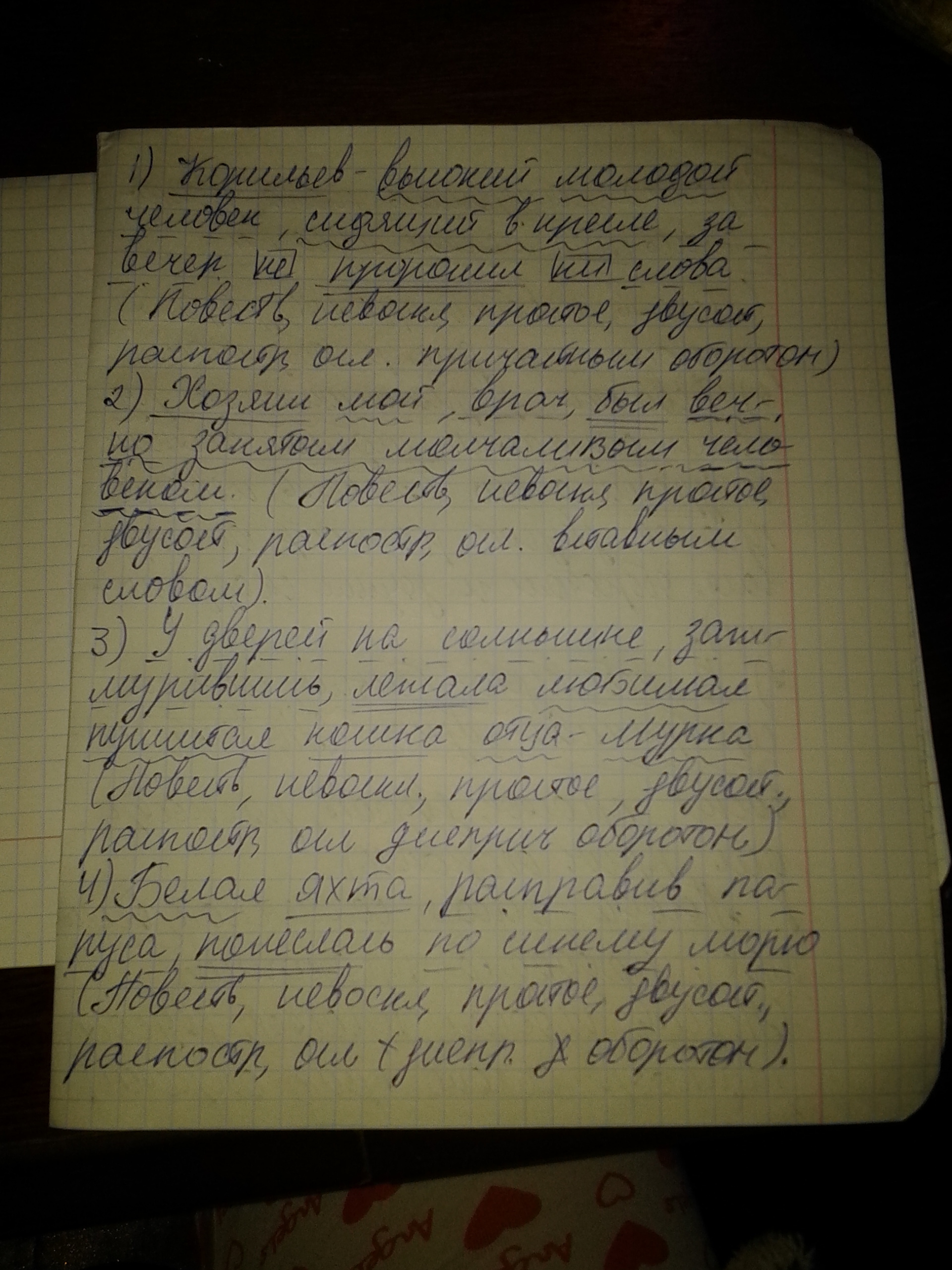 4) Белая яхта,расправив паруса,понеслась по синему морю