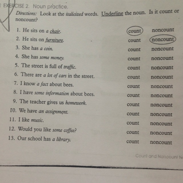 3. count 4.noncount 5.count 6.count 7.count 8.noncount 9.noncount 10.count 11.noncount 12.noncount 13.count