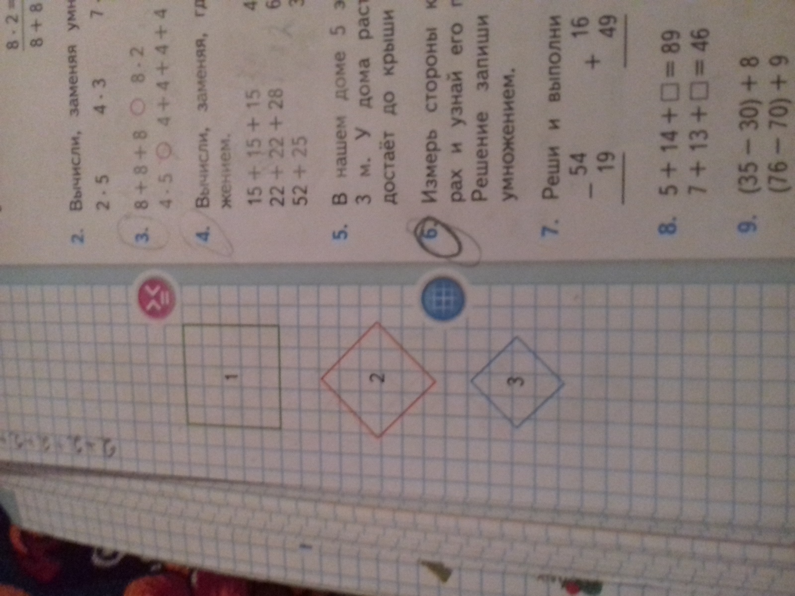 б)стороны второго квадрата= 15 мм