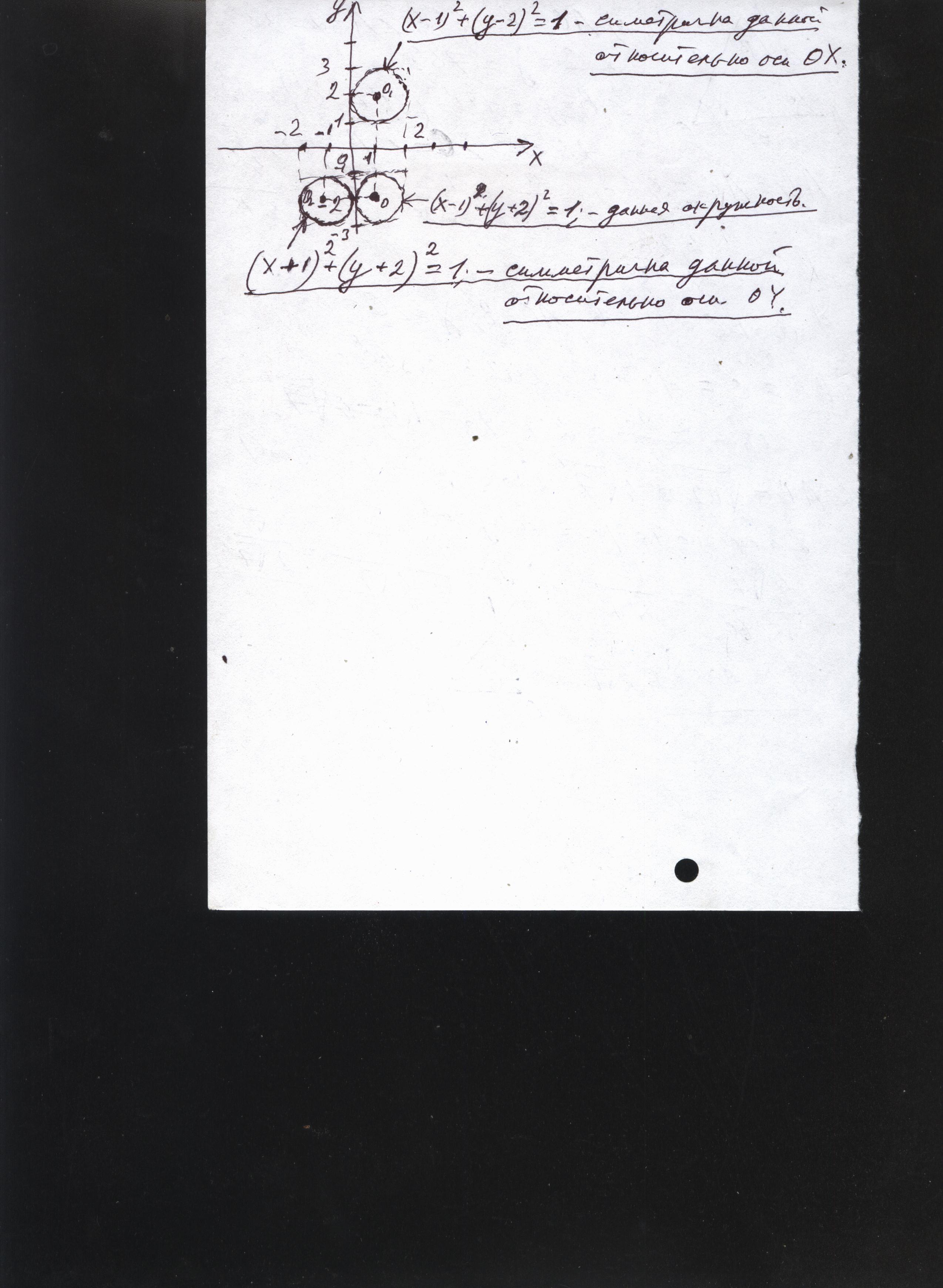 Запишите уравнение окружности, которое симметричное окружности (х – 1)2(До квадрата) + (у + 2)2(до квадрата) = 1 в отношении: