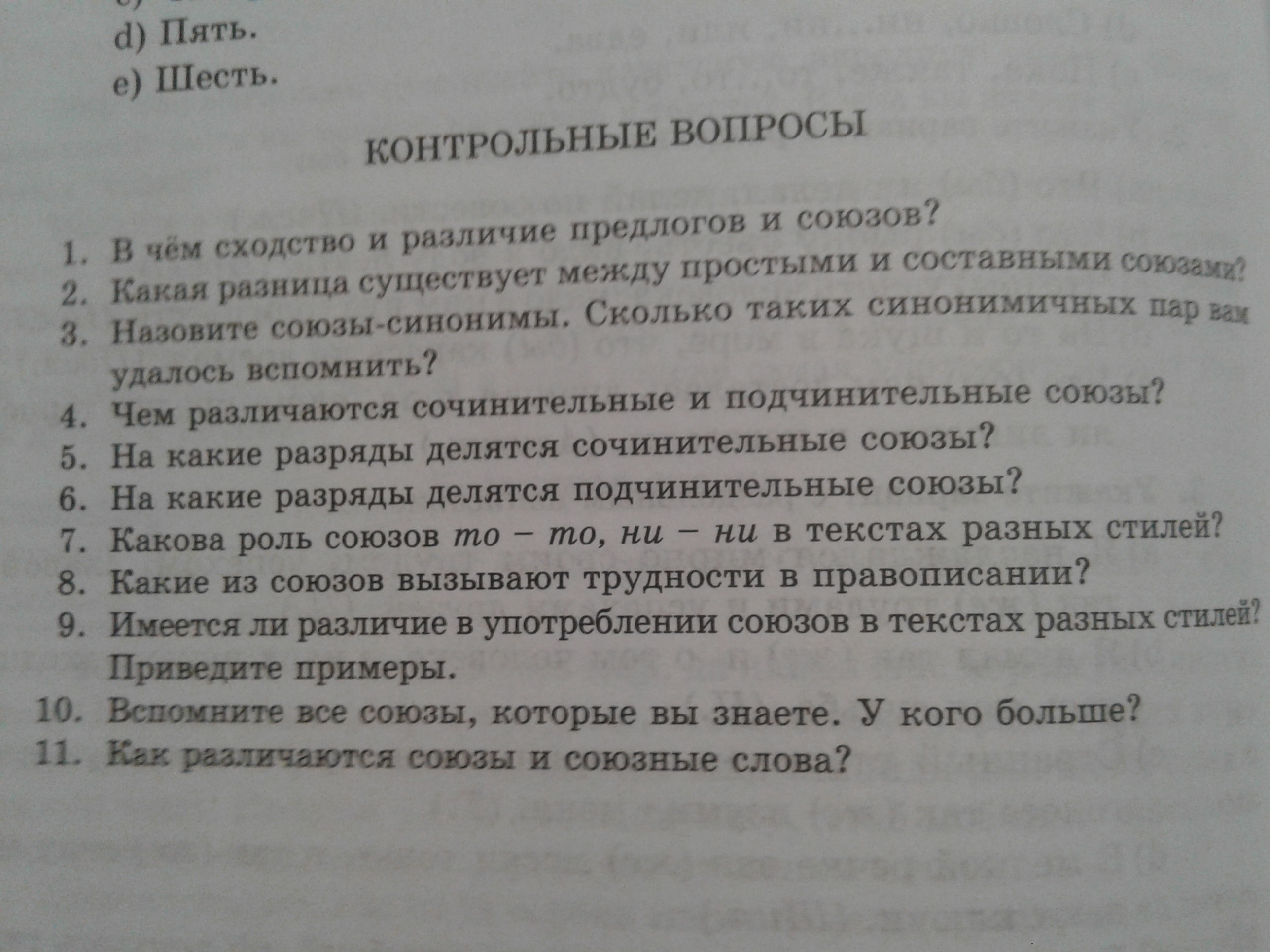 5. Сочинительные союзы имеют следующие разряды по значению: