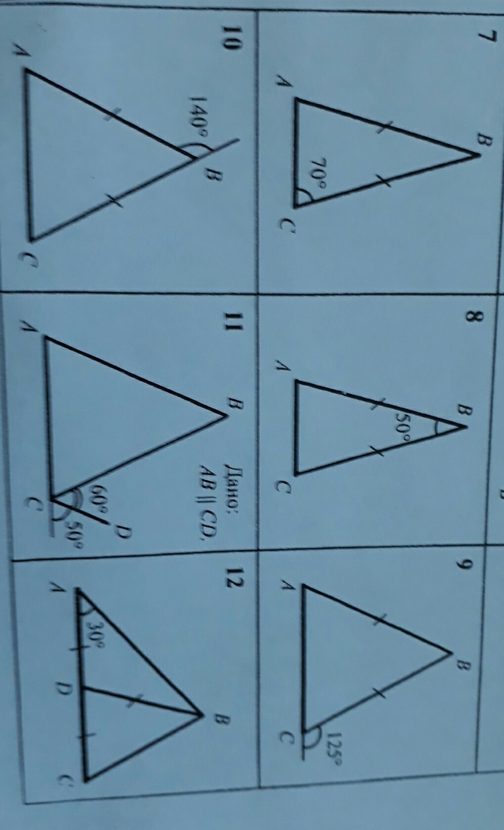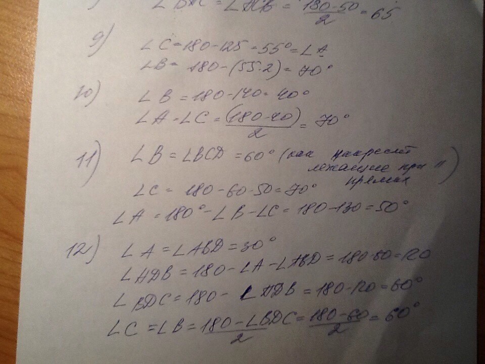 11. ∠B=∠BCD=60° ∠C=180-60-50=70° ∠ A=180-∠B -∠ C =180-130=50°
