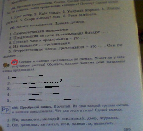 Помогите упражнение 497!! Кто не видит задание: Составь и напиши предложения по схемам. Может ли у тебя получится рассказ? Обозначь, какими частями речи выражены члены предложения.