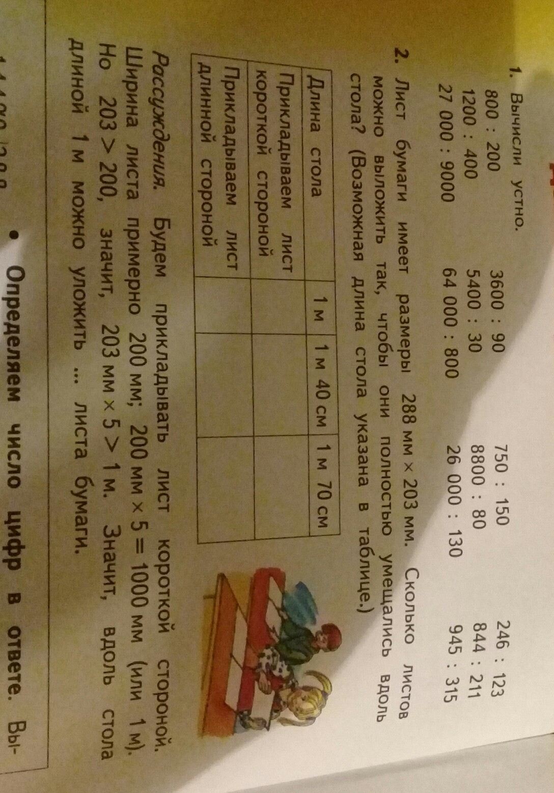 лист бумаги имеет размеры 288мм*203мм. Сколько листов можно выложить так, чтобы они полностьюумещались вдоль стола? (Возможная длина указана в таблице)