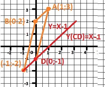 даны три последовательные вершины параллелограмма A( 1, 3) B( 0, 2) C( -1, -2). не находя точки D найдите уравнение стороны AD