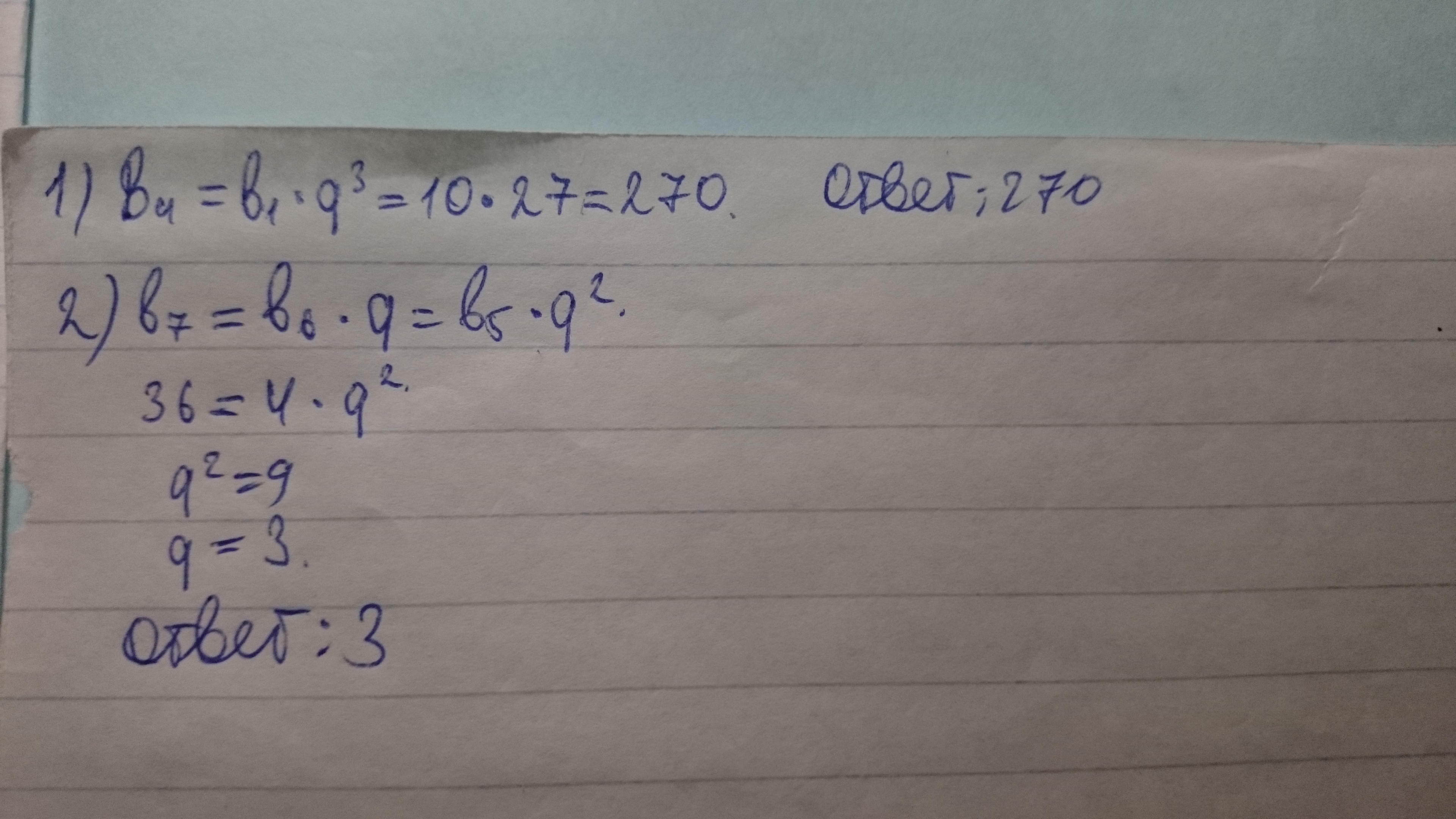 2) Найти знаменатель геометрической прогрессии, если b7=36; b5=4