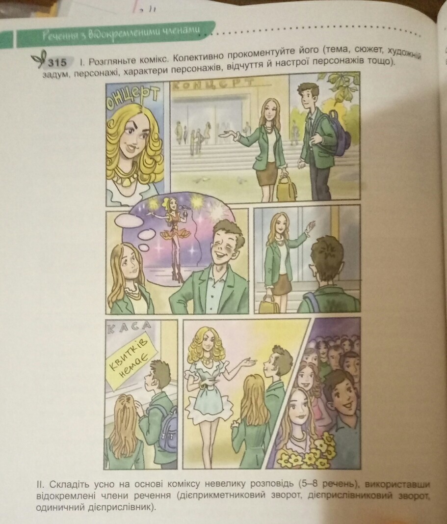 Спочатку дівчина пропонує своєму другові подивитися концерт,і він погодився,але коли вони пішли купити квитки то їх вже там не лишилося,потім там появилася зірка яка їм допомогла туди пройти.