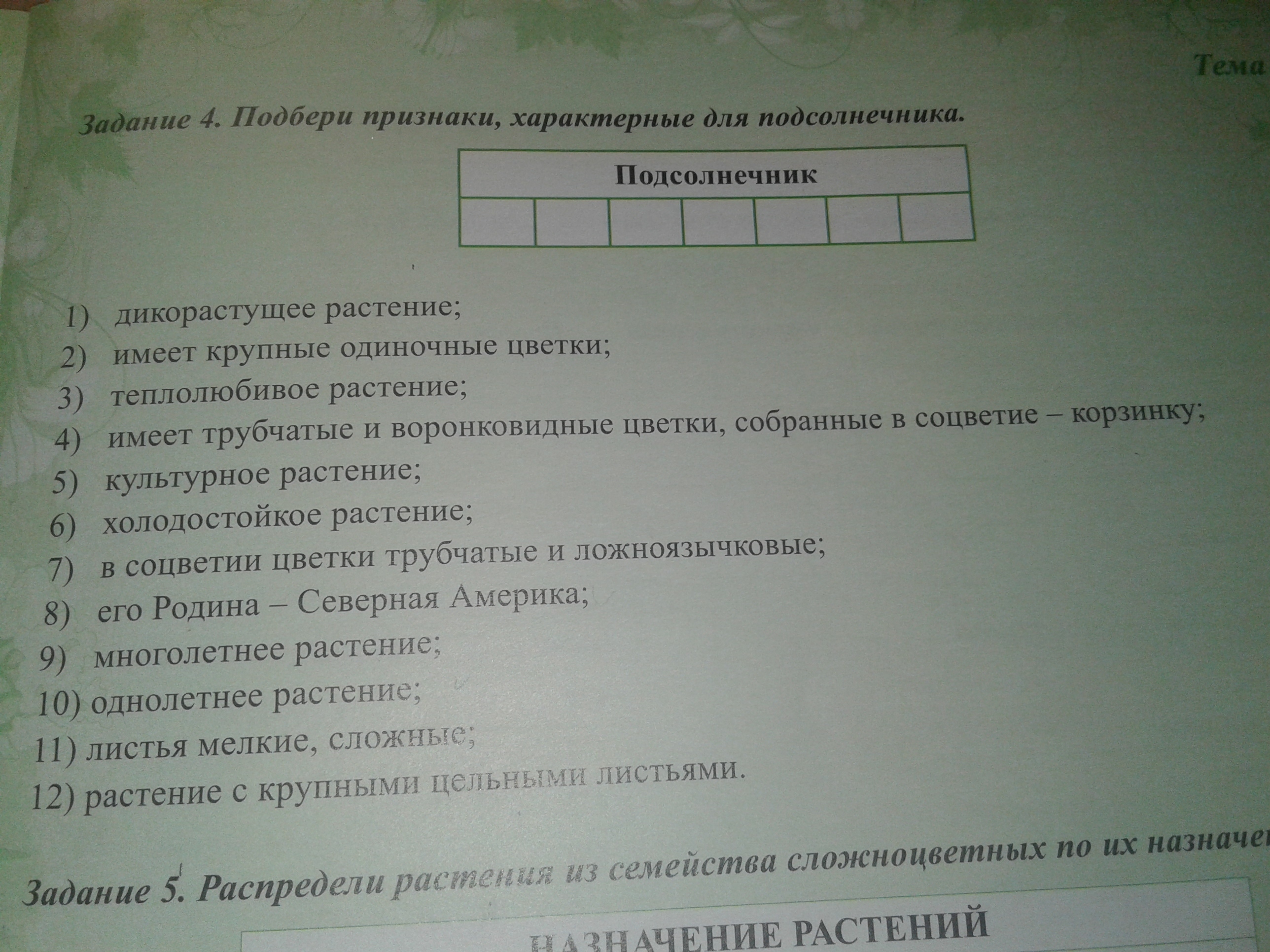 Подбери признаки характерные для подсолнечника. Пожалуйста ОООЧЕНЬ СРОЧНО!!! Заранее огромное спасибо!