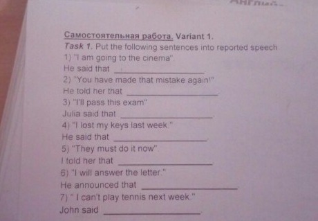 1) he said that he was going to the cinema