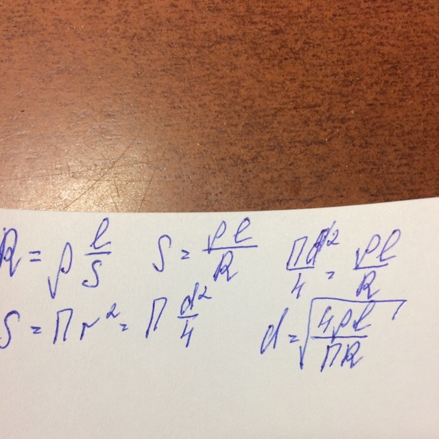 Каким может быть диаметр алюминевого провода длиной 8 м,если его сопротивление алюминия 0,028 Ом*мм2/м