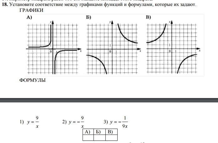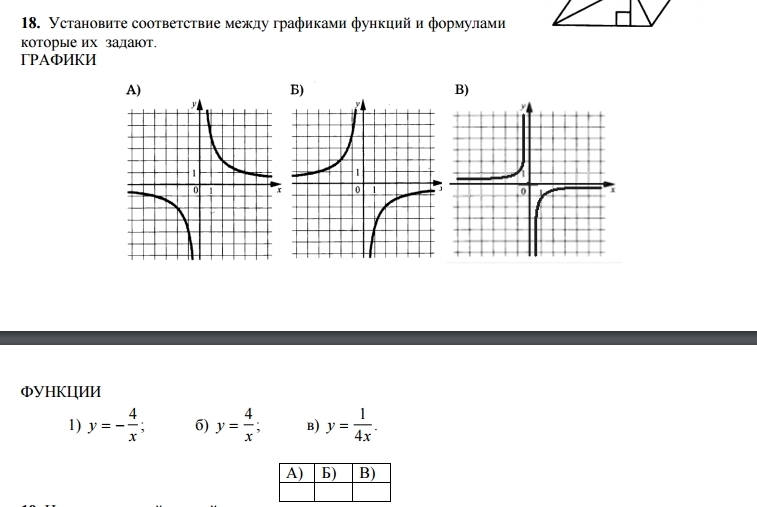 Установите соответствие между функциями и их графиками