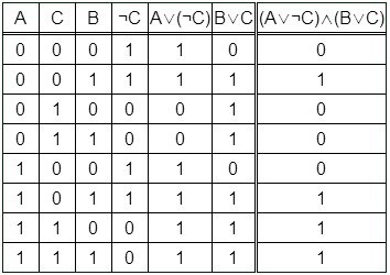 Логическая функция F задаётся выражением (a ∨ ¬c) ∧ (b ∨ c). Определите, какому столбцу таблицы истинности функции F соответствует каждая из переменных a, b, c.