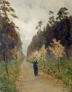 Дорога кажется нескончаемой, как и путь жизни, пройденный этой женщиной. Она оставила свои обиды и горечи там, позади. Скамья как символ чего-то ушедшего, ведь она пуста. Мысли женщины пусты и унылы, показывая отражение этой картины.