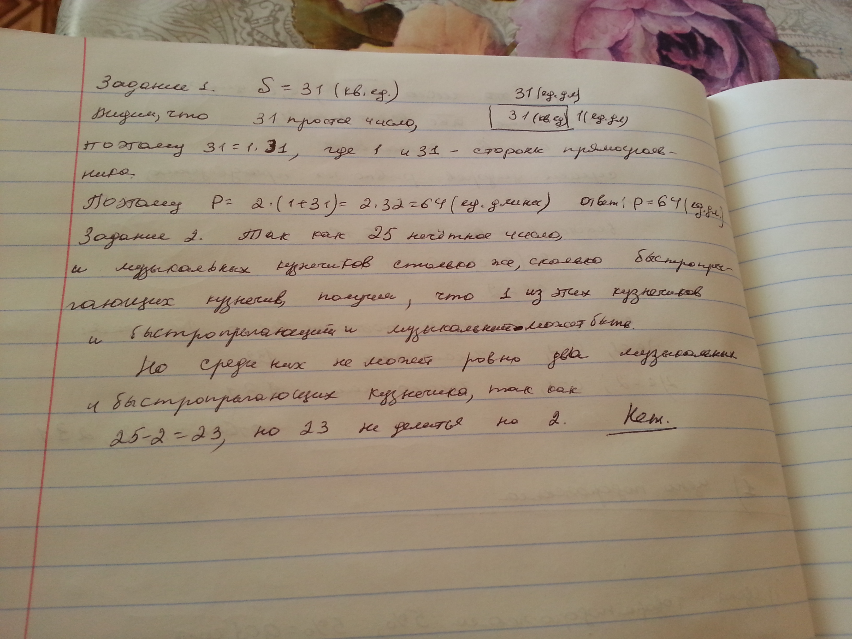 Задание №1 Кузнечик прыгает по клетчатой прямоугольной дорожке,площад которой равна 31 клетке. Каков периметр дорожки?