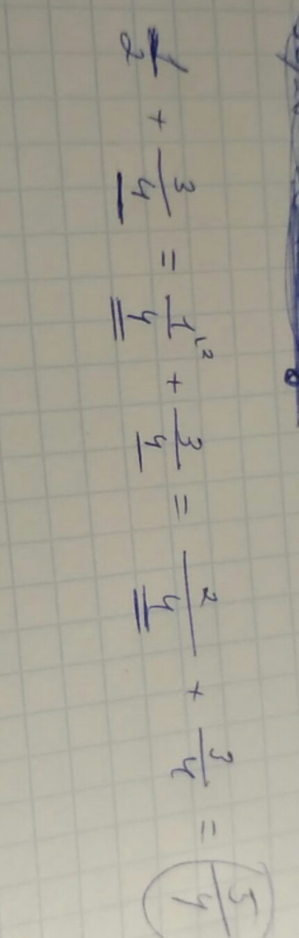 вот первых надо привести к общему знаменателю, например: 1/2+3/4
