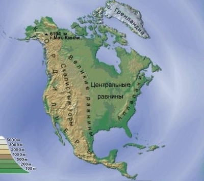 Самая высокая гора в Северной Америке это гора Мак Кинли,высота этой горы 6194 м. Самое большое озеро Северной Америки – озеро Верхнее. Кстати, озеро Верхнее является самым большим по площади пресноводным озером в мире.