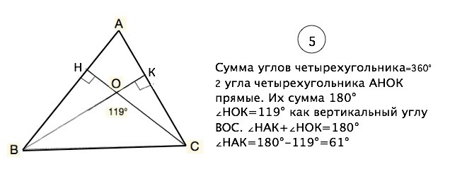 В треугольнике АВС проведены высоты, которые пересекаются в точке О. Угол СОВ равен 119°. Найти угол А.