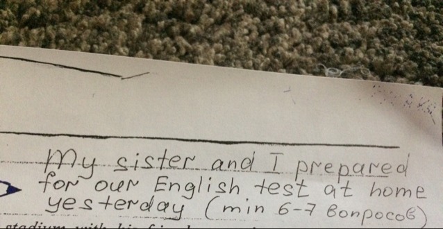With who did I prepare for English test? (I preparied for English test withmy sister)