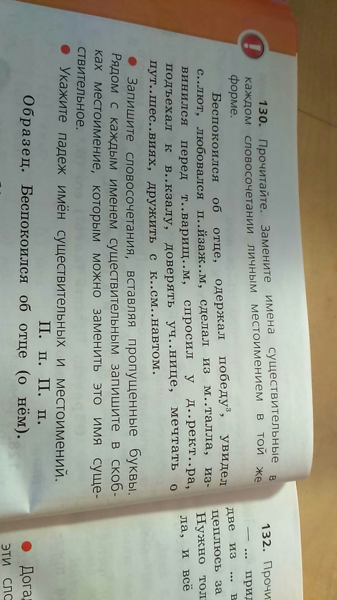 Прочитайте. Замените имена существительные в каждом словосочетании личным местоимением в той же форме. упражнение 130.