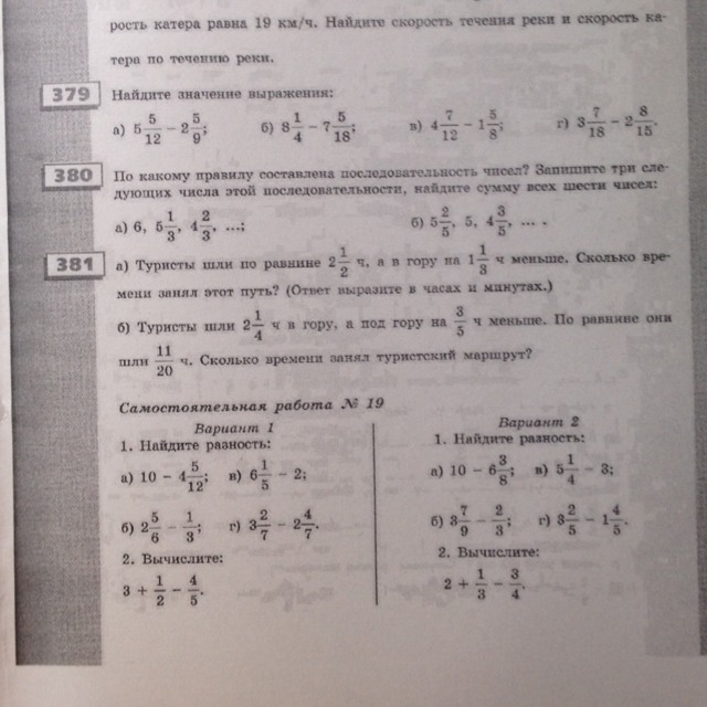 №381 : а)1)2 1/2 - 1 1/3 = 2 3/6 - 1 2/6 = 1 1/6(часа)-они шли в гору.