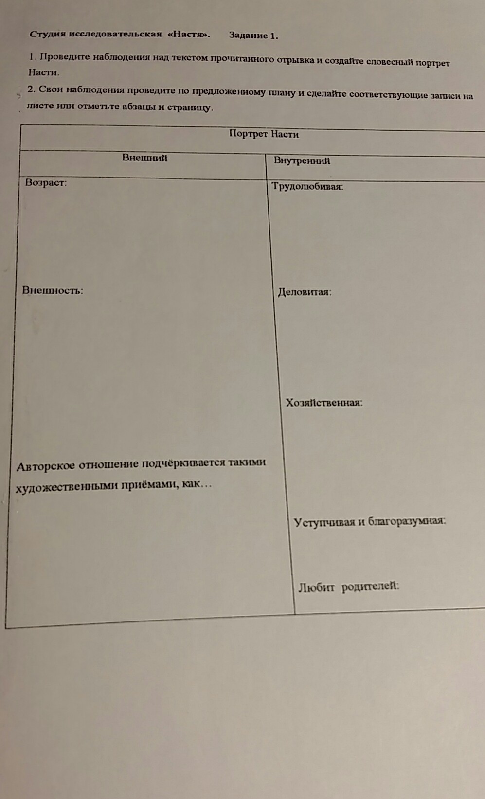 проведите наблюдения над текстом прочитанного отрывка и создайте портрет Насти.