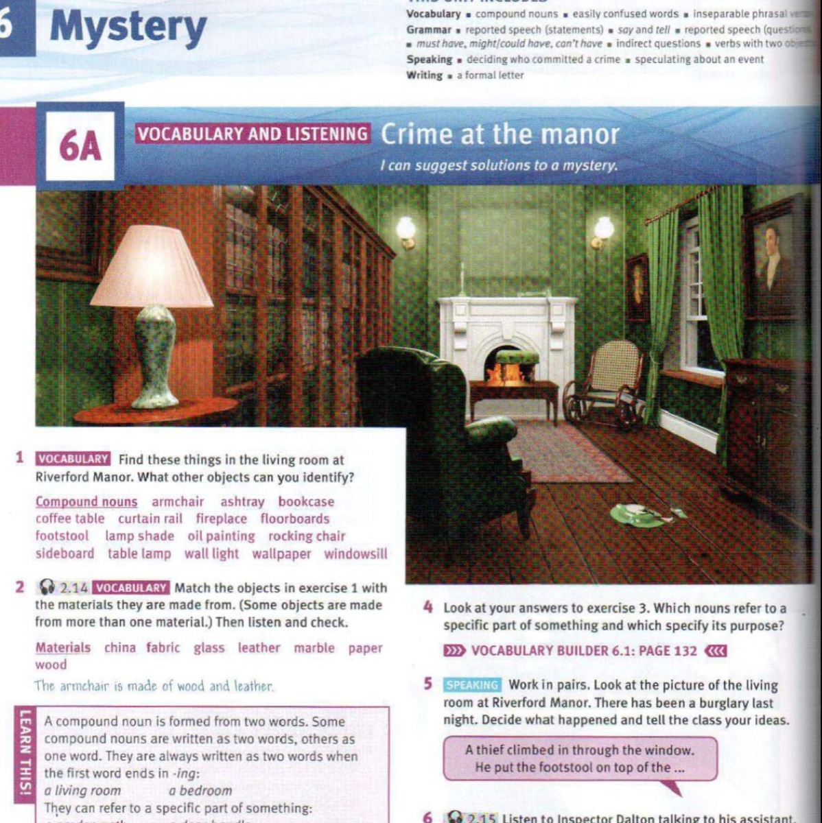 Find these things in the living room at Riverford Manor. What other objects can you identify.