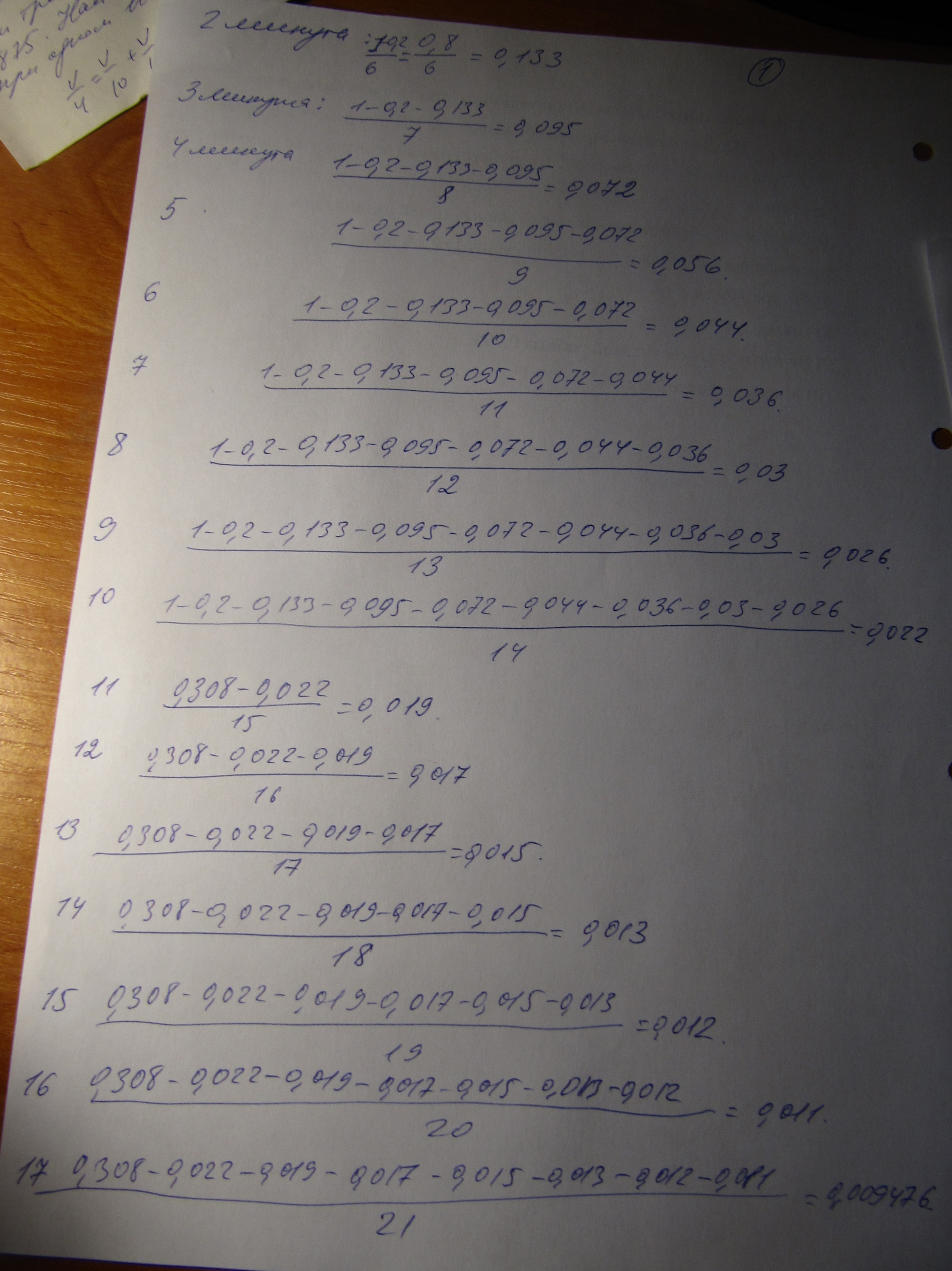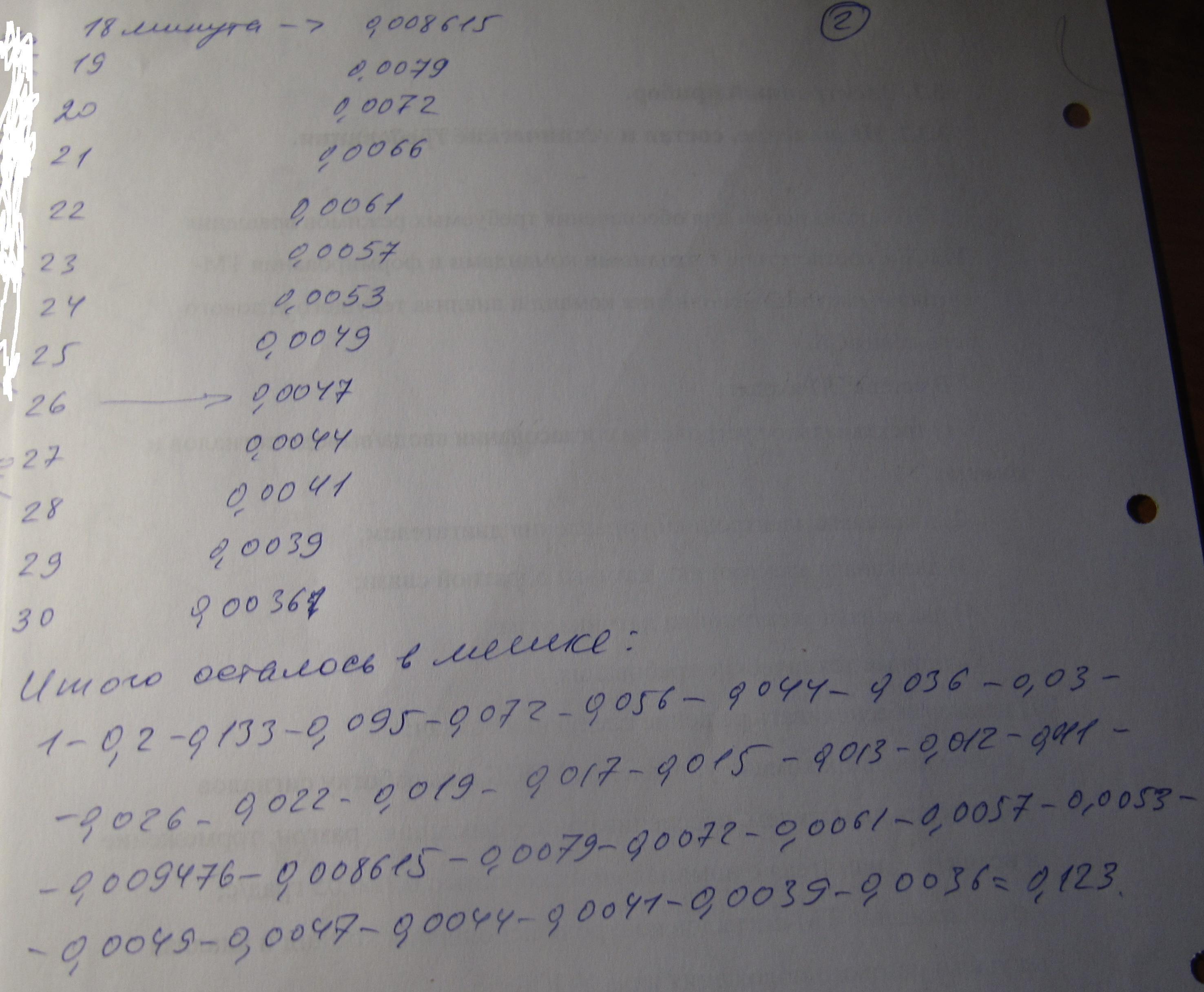 В мешке с сахаром образовалась дырка, через которую в 1-ю минуту высыпалась 1/5 часть сахара, во вторую – 1/6 часть остатка, в третью – 1/7 часть нового остатка и т.д. Какая часть сахара останется в мешке через полчаса?