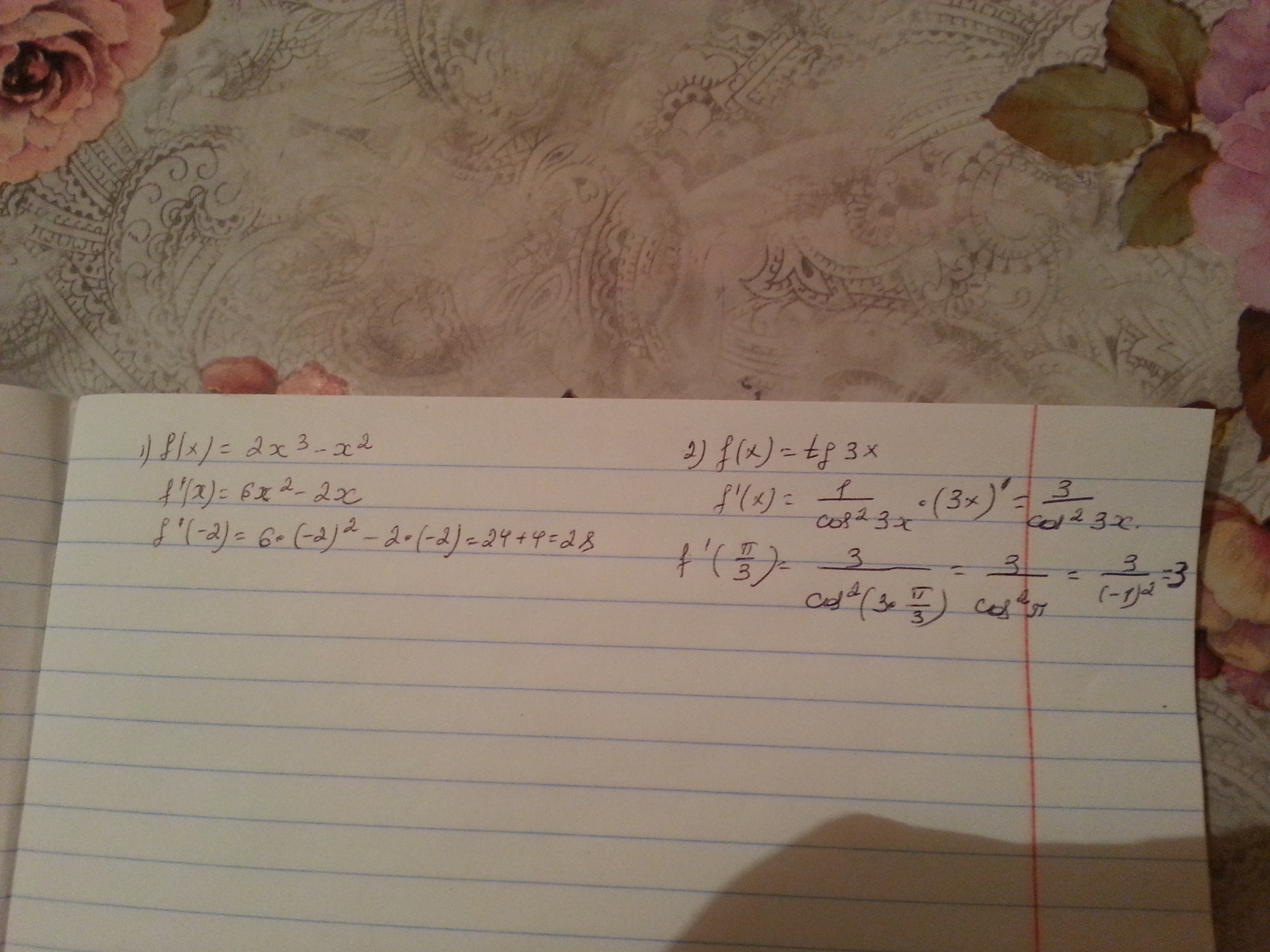 2) обчислите f'(pi/3),если f(x)=tg3x