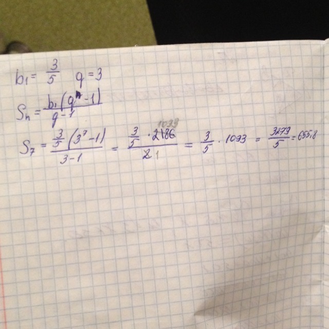 bn- геометрическая прогрессия, знаменатель прогрессии равен 3, b1=3/5. Найдите сумму первых 7 ее членов.