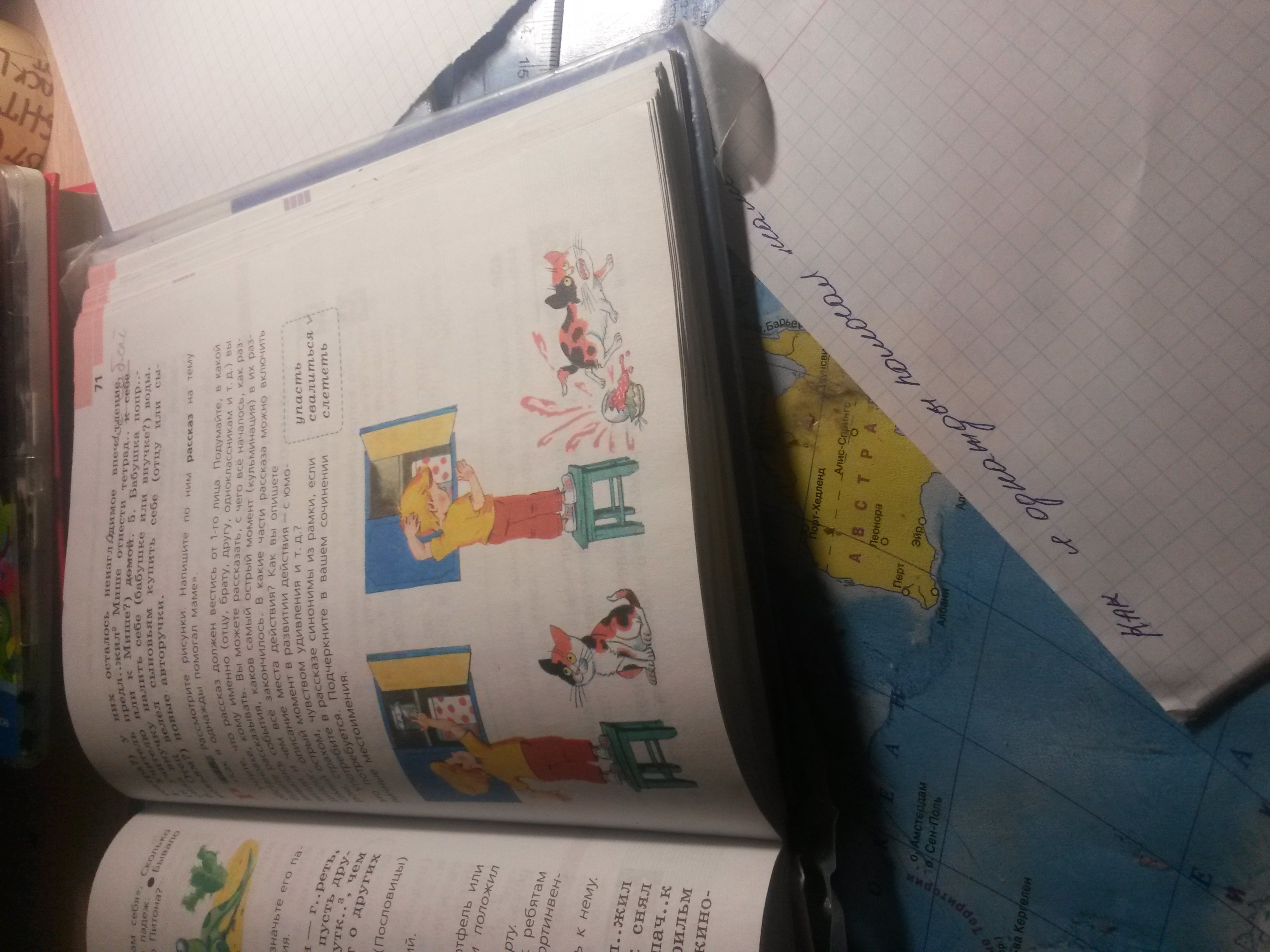 Когда я был маленьким и еще не был высок , как мой папа, но не смотря на свой рост я очень любил помогать маме.Один раз мама меня попросила ей помочь достать банку с вареньем к чаю,и вот я полез за банкой потянулся руками и вдруг банка стремительно начала падать на пол и разбилась вдребезги, на шум и грохот сбежалась мама и спросила:" Кто разбил банку с вареньем?", я конечно же не хотел получить от мамы так ,что всю вину я перекинул на кошку Мурку, она с шипеньем отскочила , и больше ко мне в этот день не подходила. С того дня я больше не перекидывал всю вин на любимую кошечку.