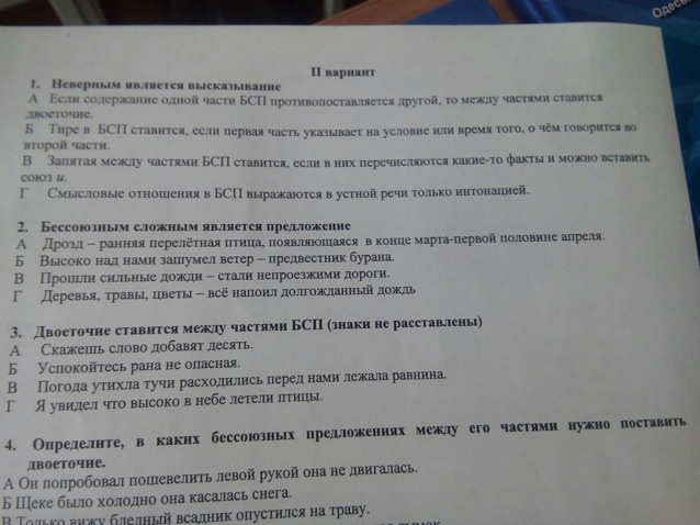 1. Неверным является высказывание А), потому что если содержание одного предложения БСП противопоставляется содержанию другого, то ставится тире.