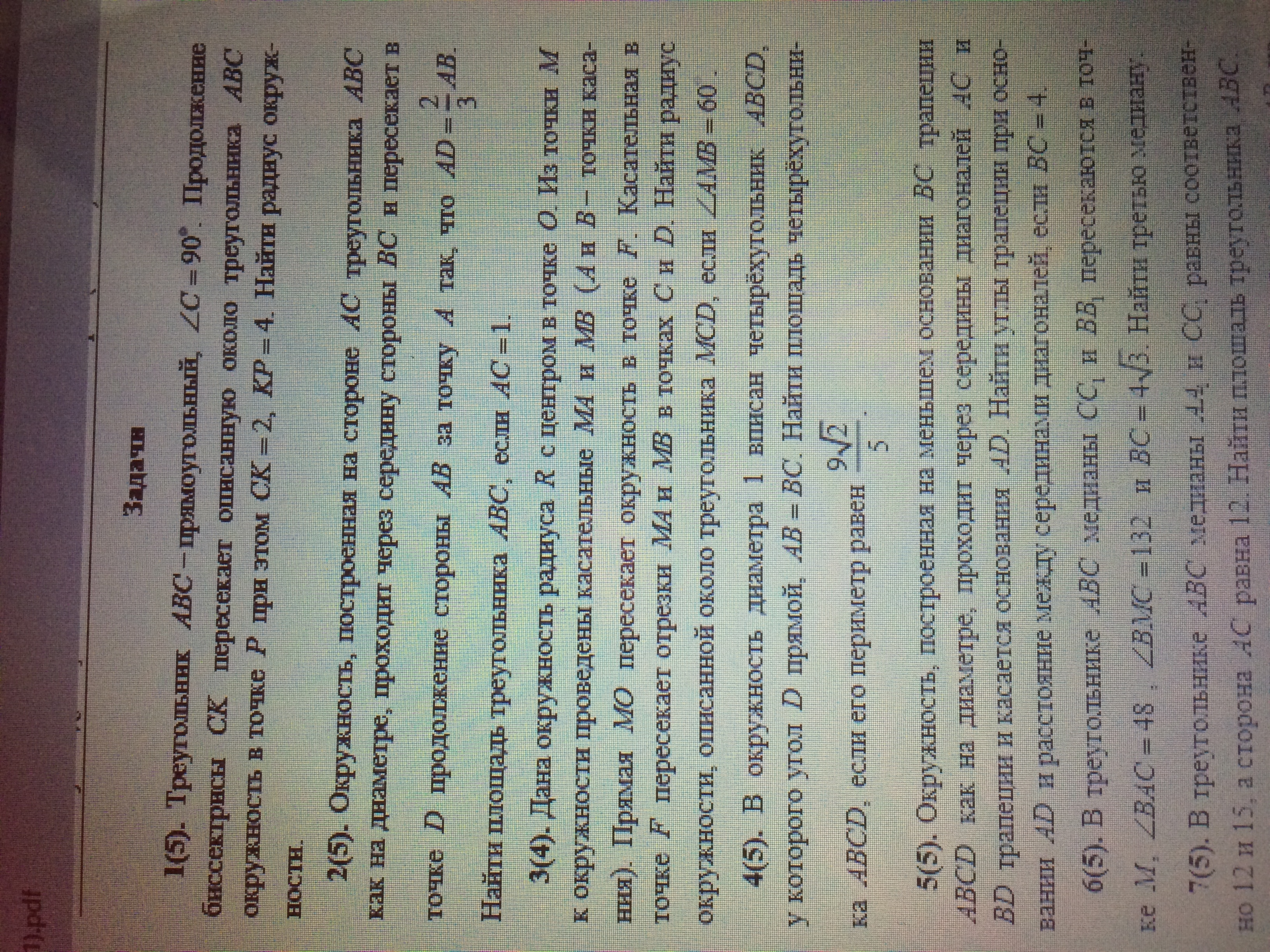 Треугольник ABC -Прямо угольный угол С равен 90°. Продолжение биссектрисы СК пересекает описаную около треугольника а ВС окружность точки Р при этом С К = 2 К Р = 4 найдите радиус окружности