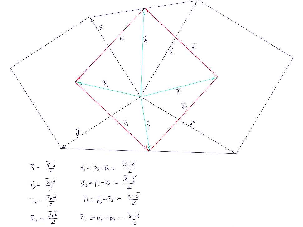 На вложенном рисунке показано, как стороны искомой фигуры выражаются через эту четверку векторов. Уже очевидно, что эта фигура - параллелограмм.