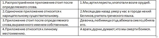 Запишите предложения из правого столбика в соответствии с формулировками,данными в левом столбике таблицы.