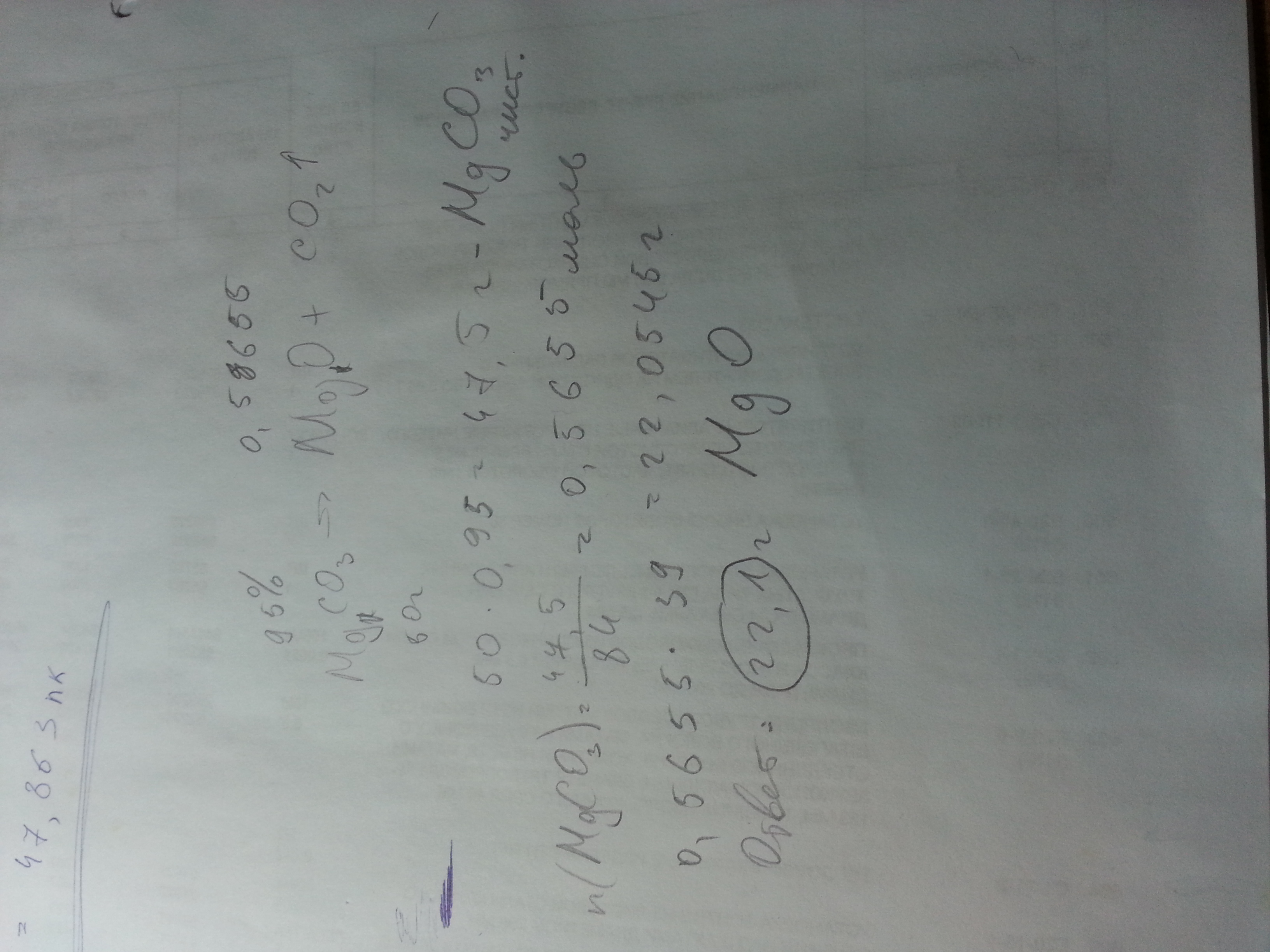 Рассчитайте массу оксида магния,который образуется при разложении 50г карбоната магния содержащего 5% примесей
