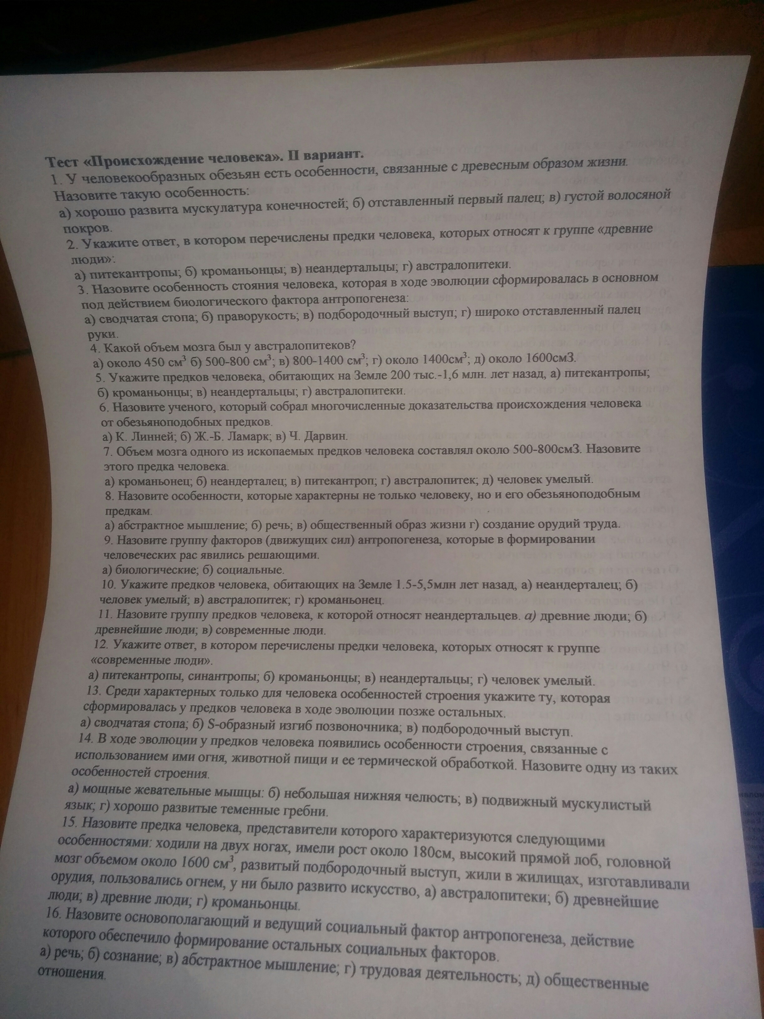 Вероятный предок человека: Вариант (г) Австралопитеки