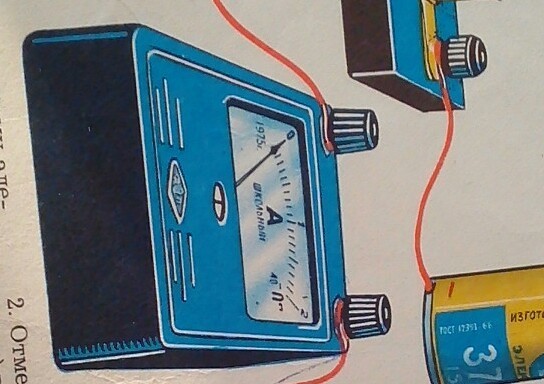 Амперметр, последовательно подключается, измеряет силу тока в амперах (A)