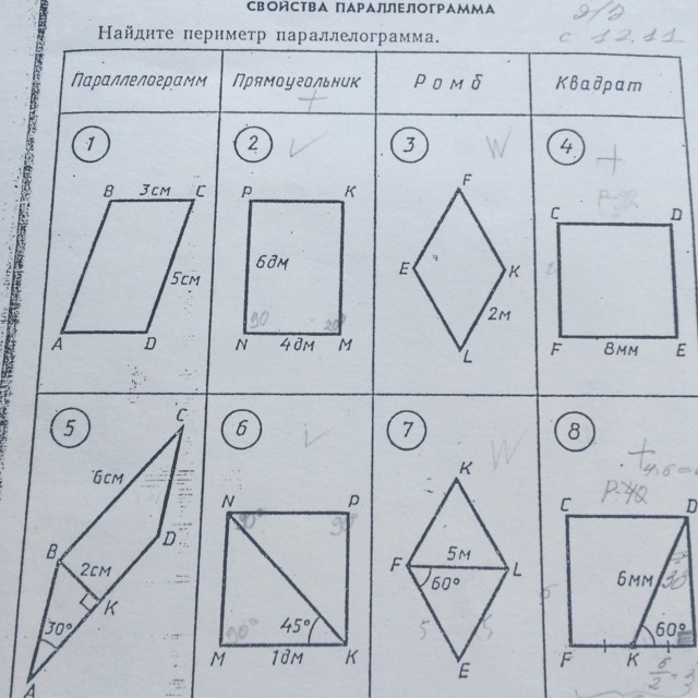 Ребята, помогите пожалуйста найти периметр параллелограмма на картинке 4 и 6. За ранее спасибо.
