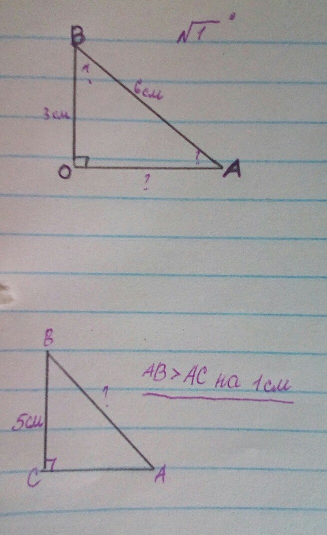 1)ОА = 5 см, угол А = 30 гр, угол В = 60