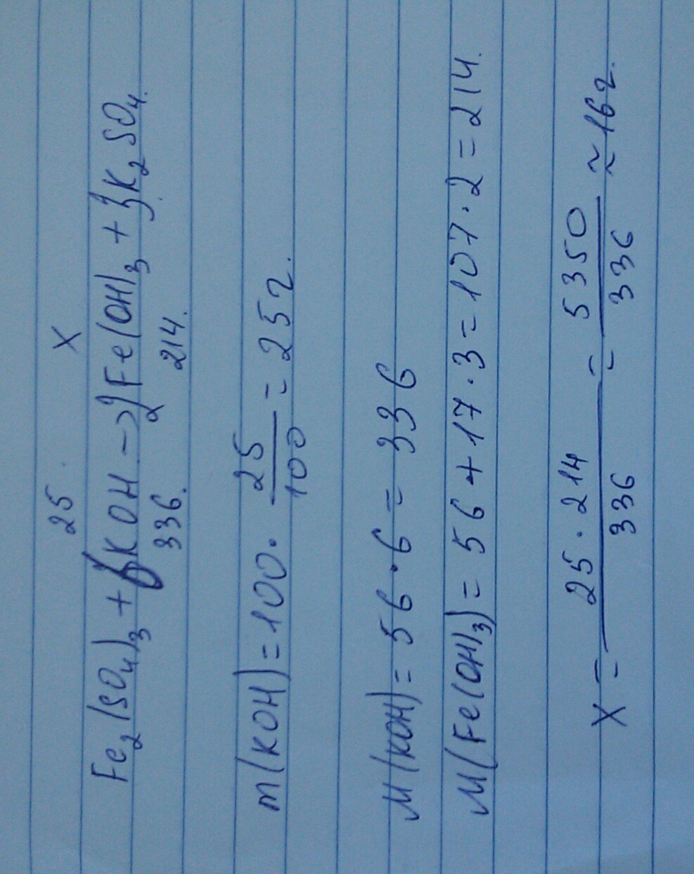 2)Определить массу Гидроксида Железа 3 образовавшегося при взаимодействии Сульфата Железо 3 с Гидроксидом Калия массой раствора в 100 граммов и массовой долей 25%