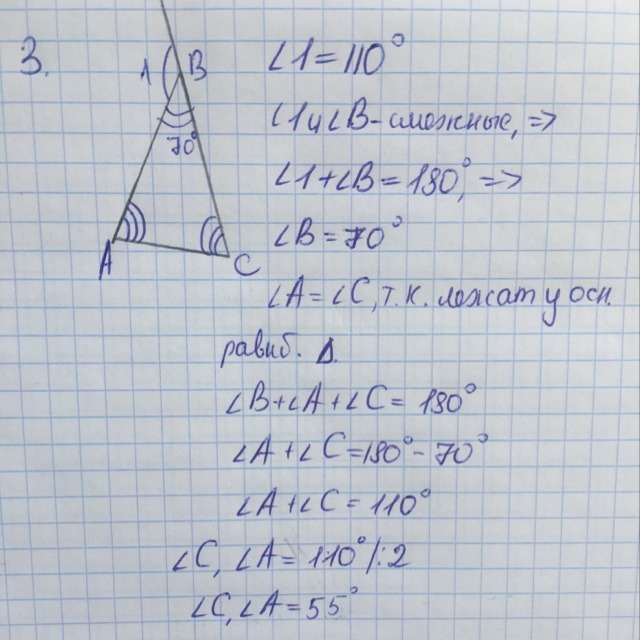 Один из внешних углов равнобедренного треугольника равен 110 градусам. Чему равны углы этого треугольника?