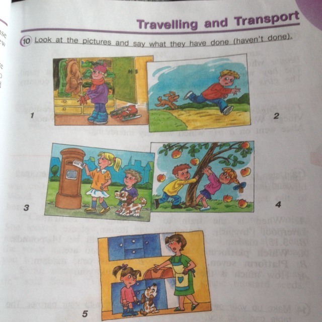 The boy wears gloves.Boy running from dog.Girl with a boys and a dog throw mail the sheet to the mailbox.The boy with the girl shake the tree.Mom scolds a daughter.