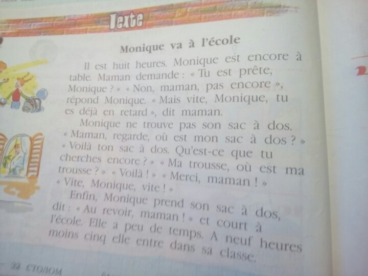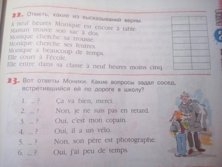 верно (vrai): Maman cherche sa trousse. Elle court à l'école. Elle entre dans sa classe à neuf heures moins cinq.