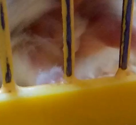 ( я не знаю, как это получилось, но у хомяка на животике большая красная выпуклость. Она сегодня лопнула, из неё течёт кровь )