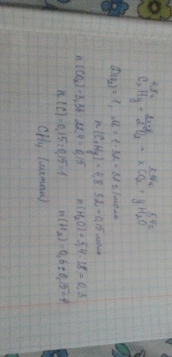 113. При сгорании органического вещества массой 4,8 г получили 3,36 л углекислого газа (н.у.) и 5,4 г воды. Плотность паров вещества по кислороду равна 1. Установите молекулярную формулу вещества.