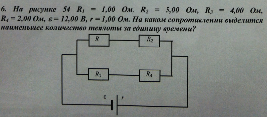 На каком сопротивлении выделится наименьшее количество теплоты за единицу времени?