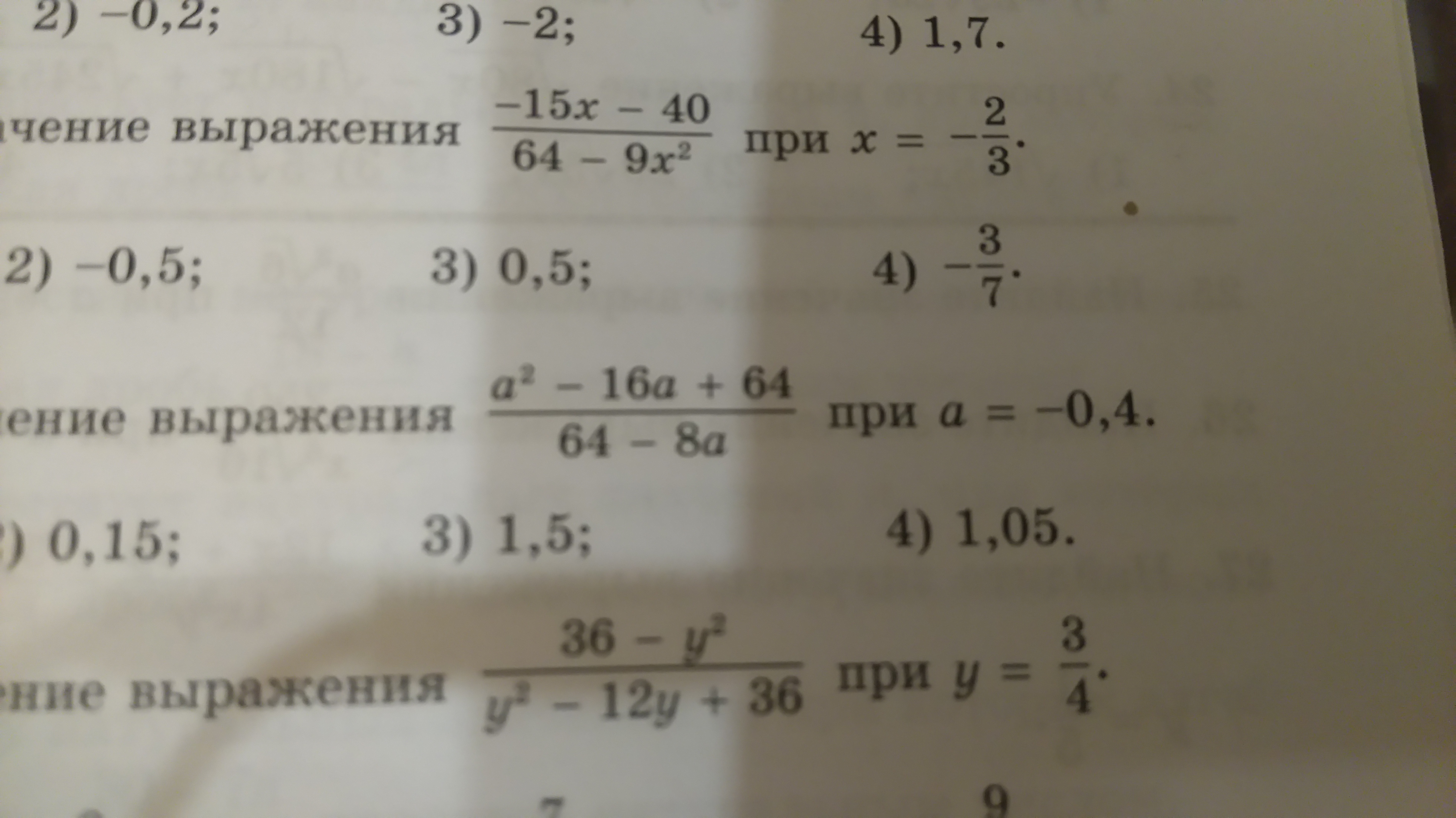 упрости выражение для этого найди формулу в числителе(a2-16a+64=(a-8)2 (2-показатель степени)).В знаменателе вынеси за скобки общий множитель-8 тогда будет 8(8-а).В числителе поменяй местами числа тогда будет (8-а)2 сократи 8-а тогда будет 8-а числитель и 8 знаменатель.Теперь вычисли,подставя значение ,,а,, короче ответ 1,05))))))НО РЕШЕНИЕ ЗАПОМНИ НА ДР. ПРИМЕРЫ