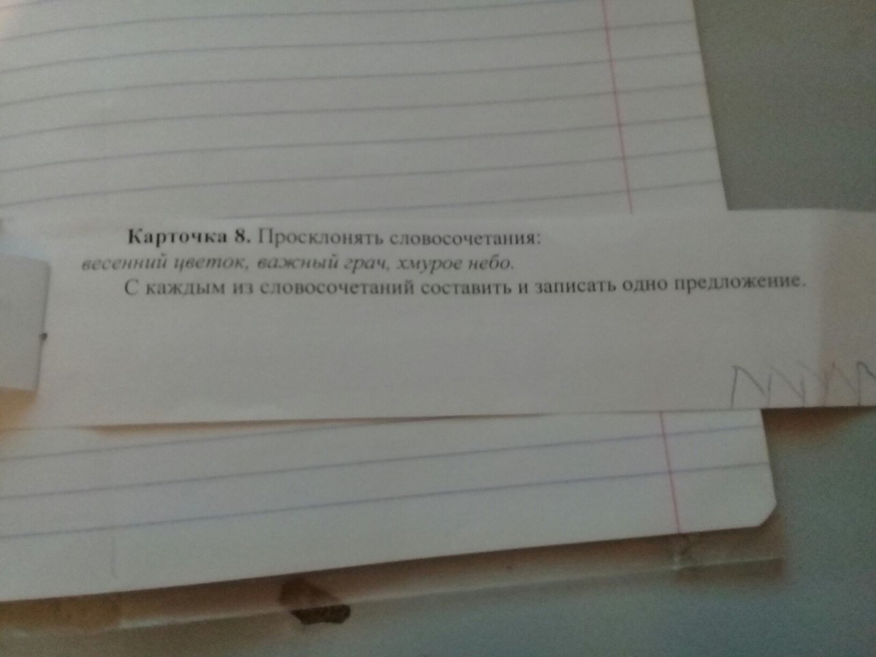 им.падеж - весенний цветок, важный грач, хмурое небо.