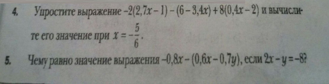 4)-2(2,7x-1)-(6-3,4x)+8(0,4x-2)= -5,4x+2-6+3,4x+3,2x-16=1,2x-20