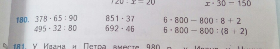 6)6*800-800:(8+2)=1 действие 8+2=10; 2 действие 6*800=4800; 3 действие 800:10=80; 4 действие 4800-80=4720. ответ:4720